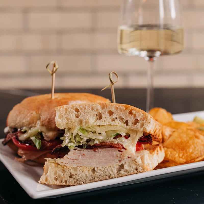 Bacon, turkey, havarti, lettuce, tomatoes, garlic spread, mayo.