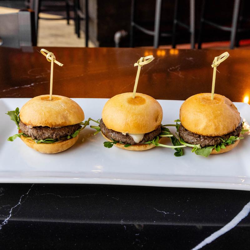 Three mini wagyu sliders, white cheddar, arugula, gio aioli.