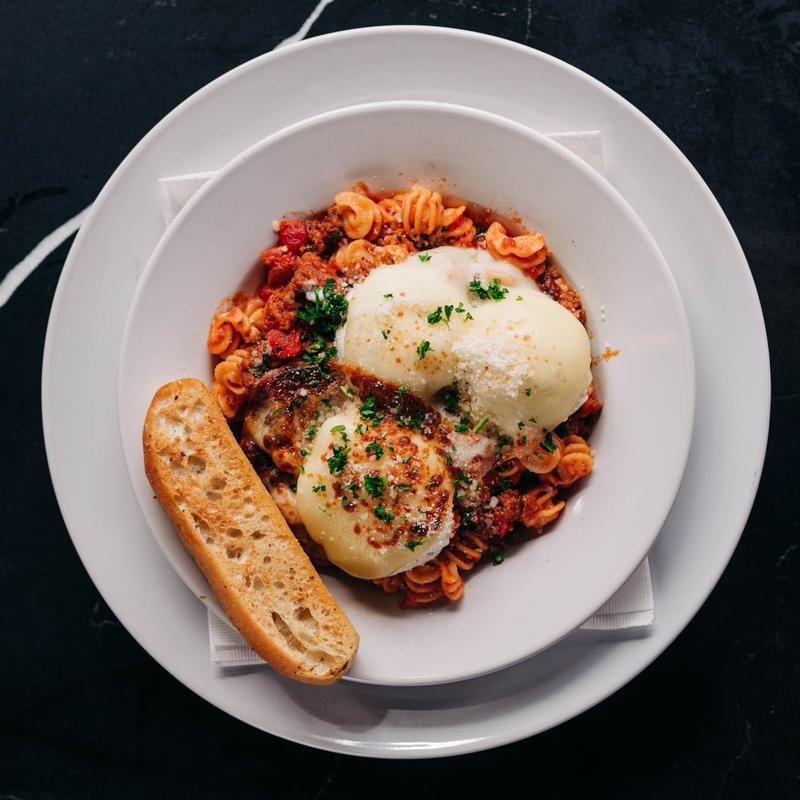 Radiatore nuggets, red meat sauce, ricotta, provolone, parmesan, basil.