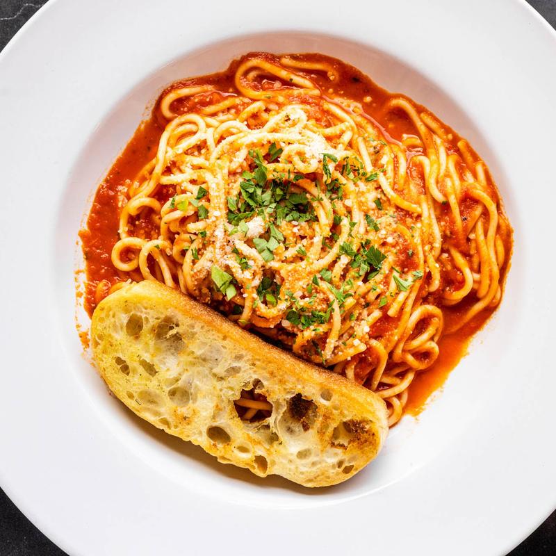 Spaghetti, red sauce, parmesan | Upgrade to Red Meat Sauce +2