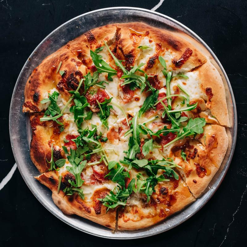 Olive oil, mozzarella, prosciutto, arugula, honey, lemon.